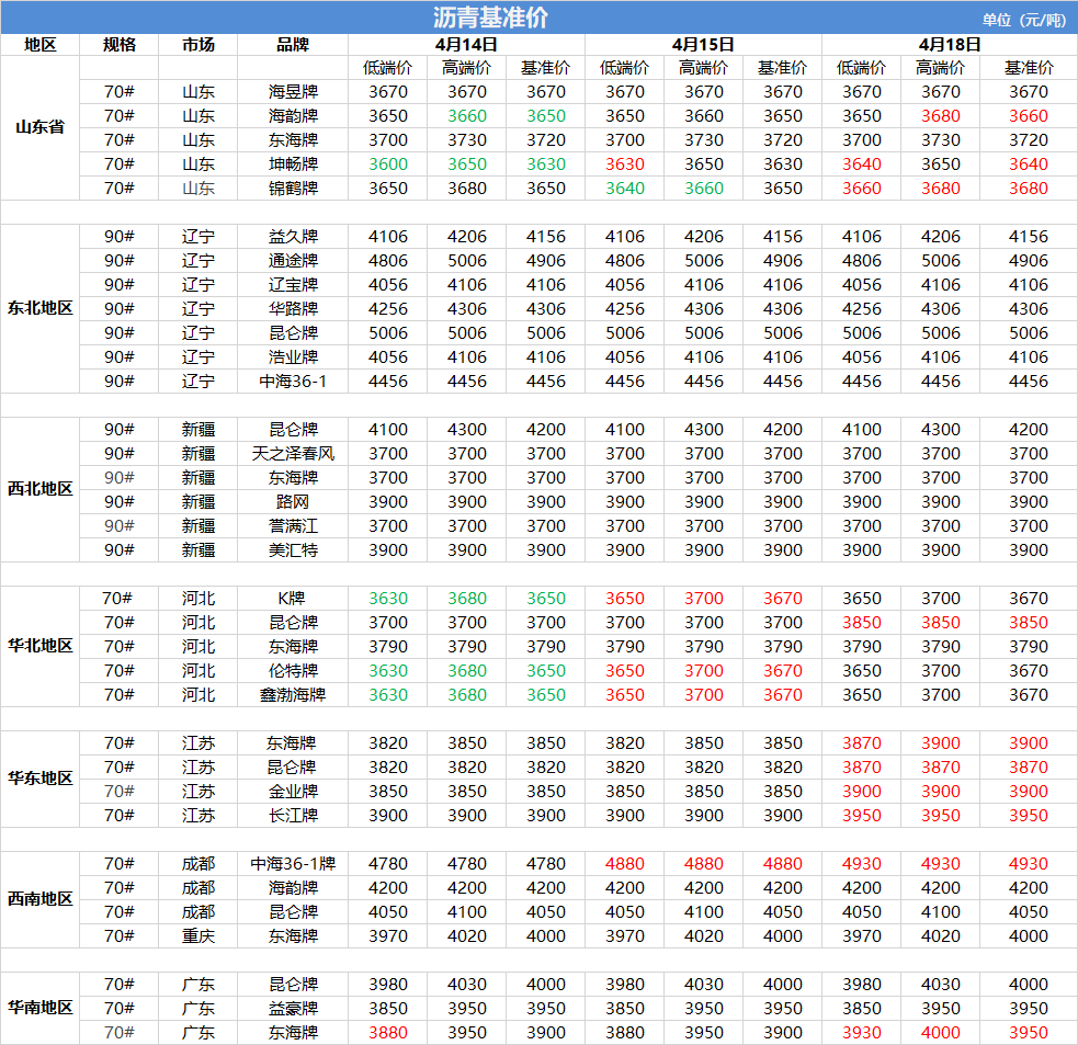 沥青基准价(4月18日)
