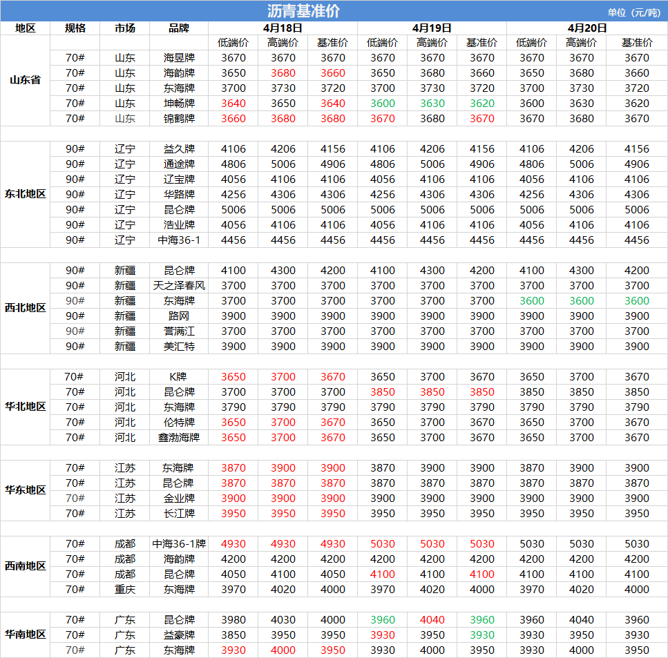 沥青基准价(4月20日)