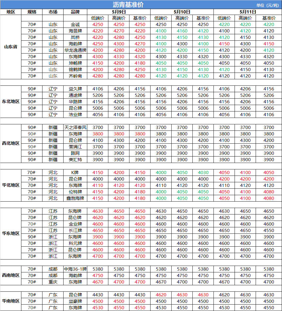5月11日沥青基准价