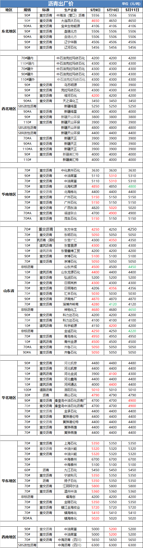 5月11日沥青出厂价