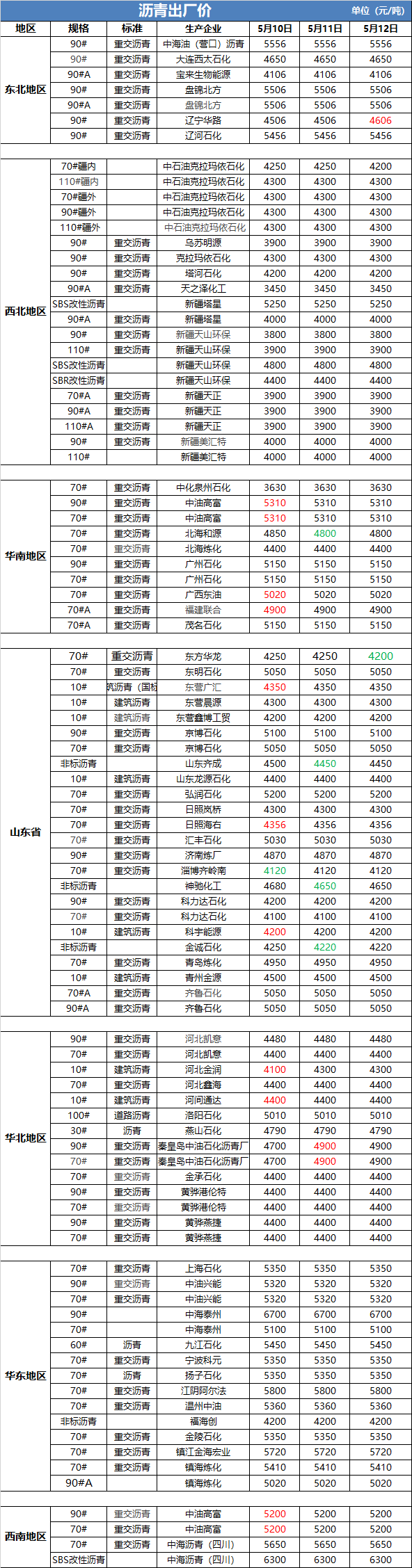 5月12日沥青出厂价