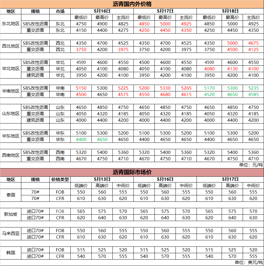 5月18日国内(外)沥青价格