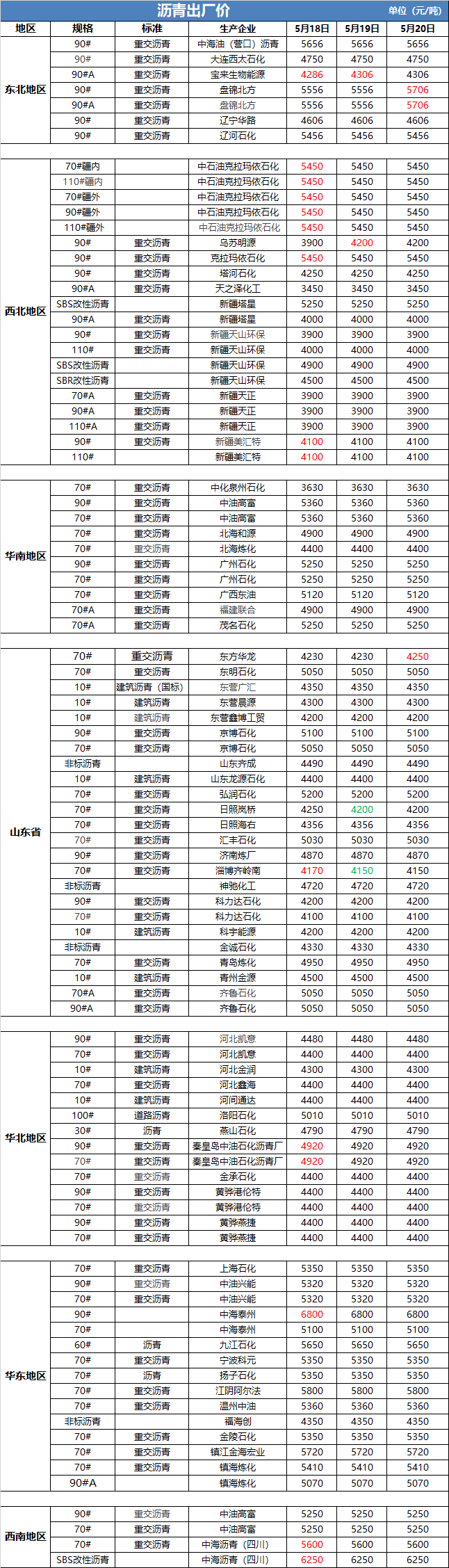 5月20日沥青出厂价