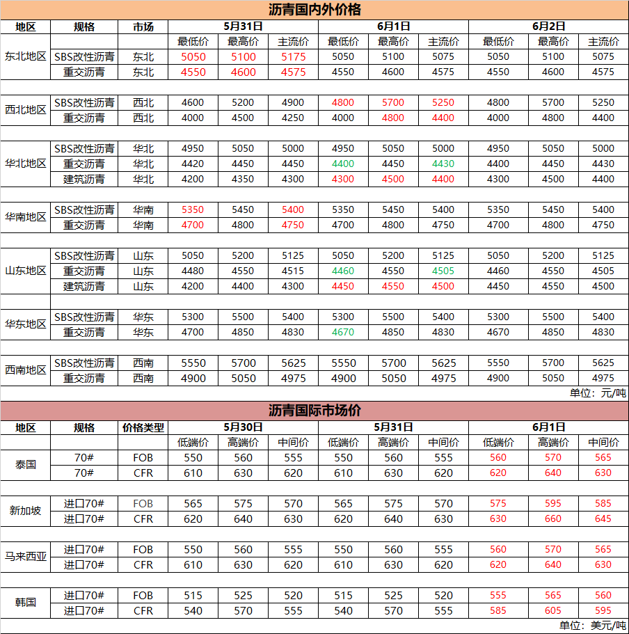 6月2日国内(外)沥青价格