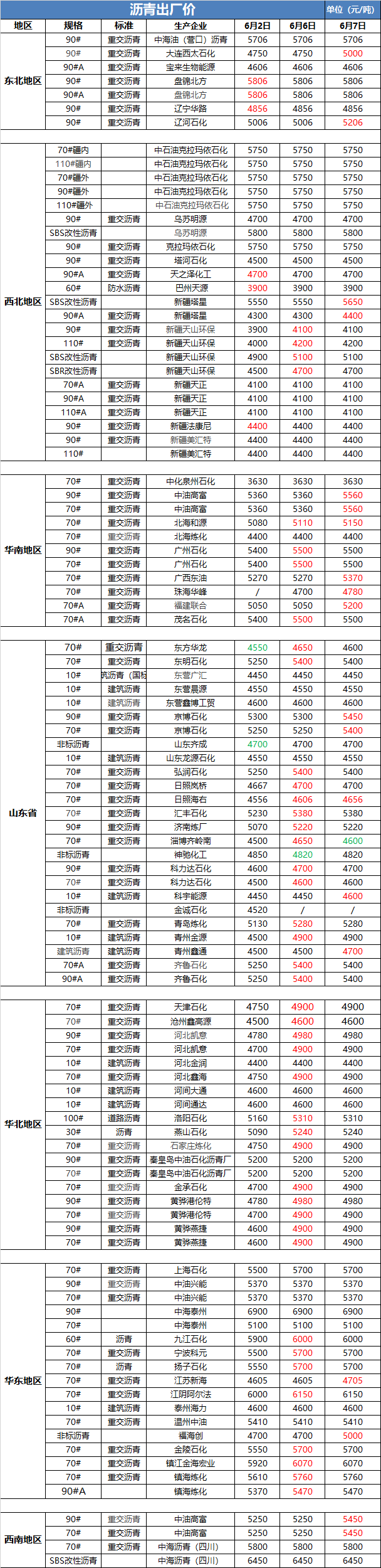 6月7日沥青出厂价