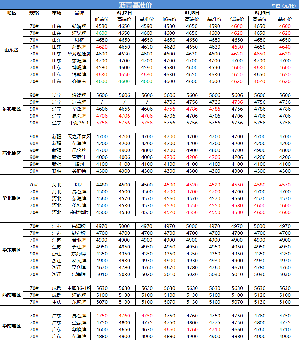 6月9日沥青基准价