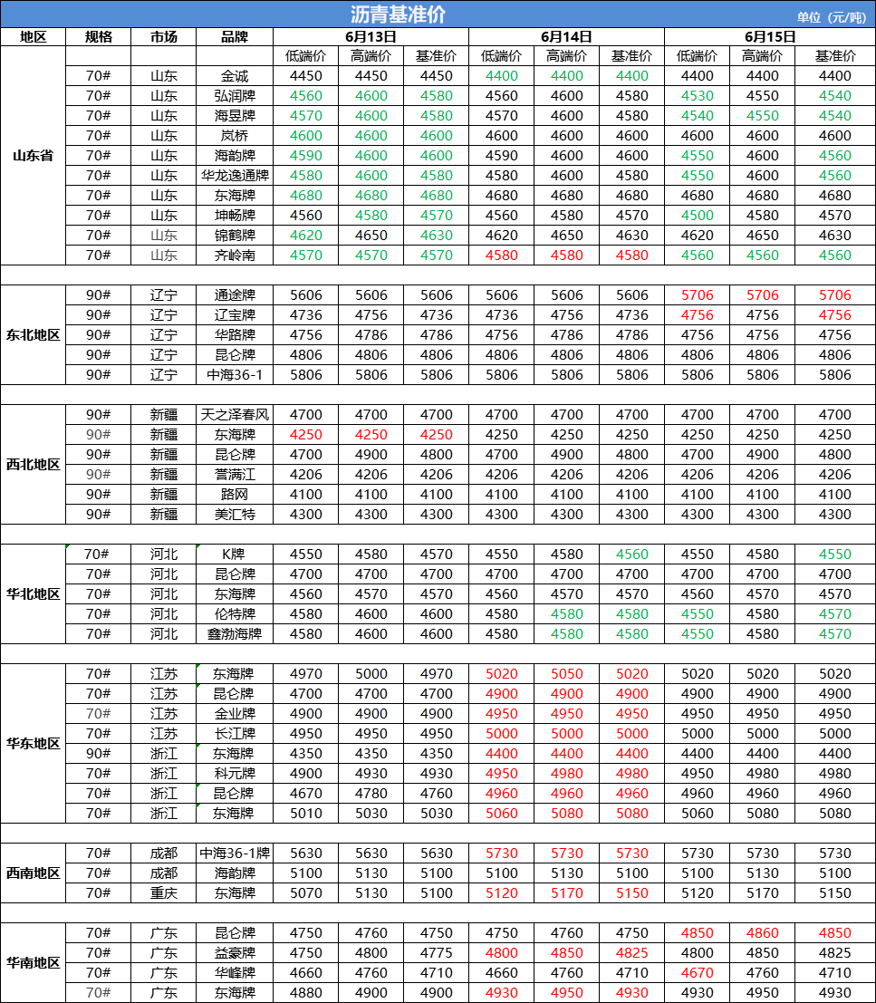 6月15日沥青基准价