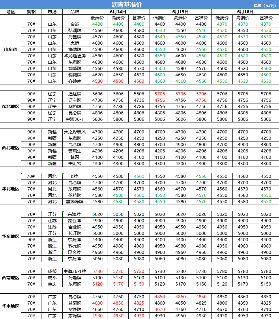6月16日沥青基准价