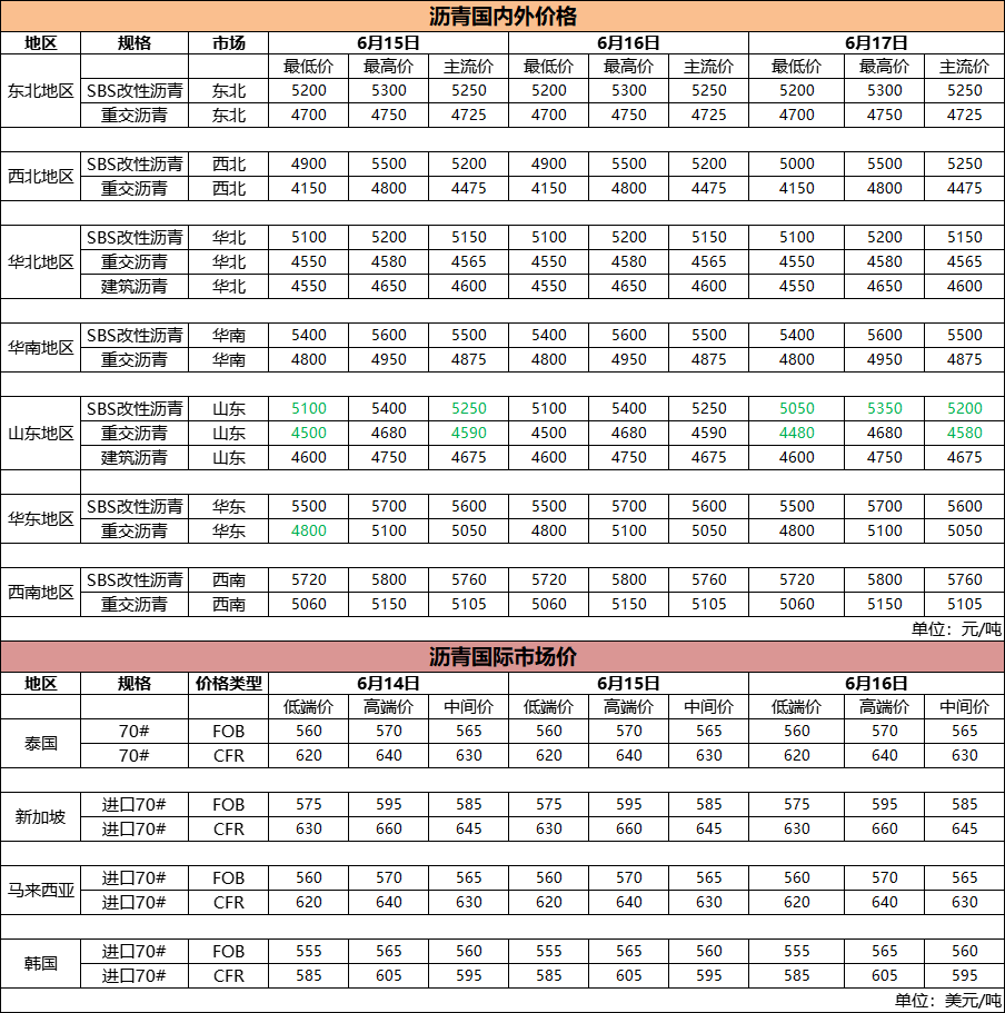 6月17日国内(外)沥青价格