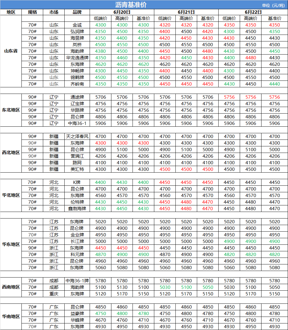 6月22日沥青基准价
