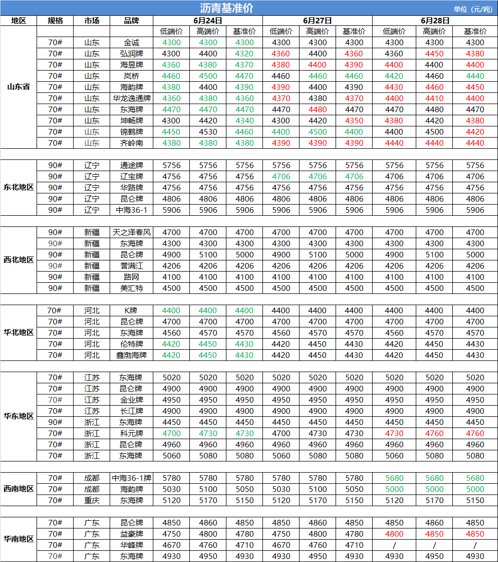 6月28日沥青基准价