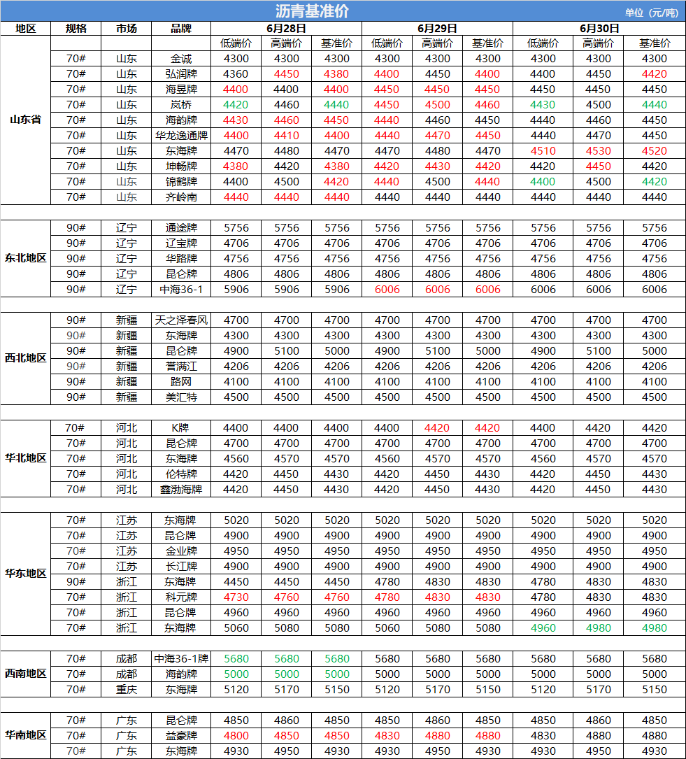 6月30日沥青基准价