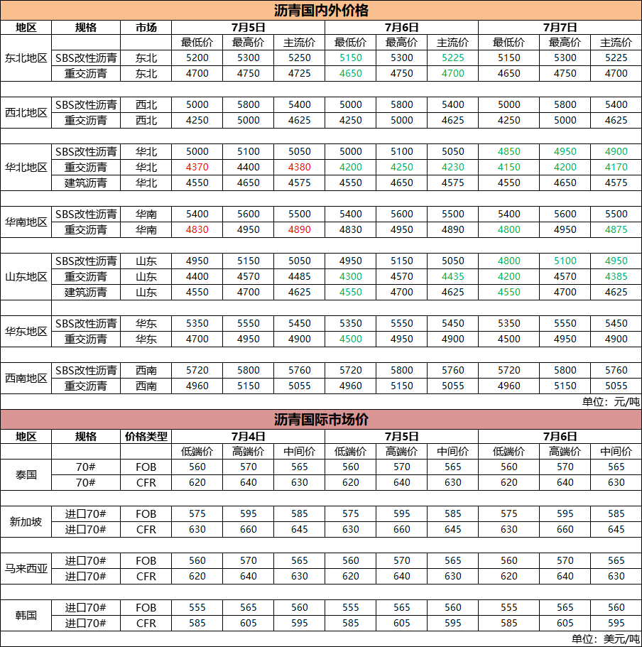 7月7日国内(外)沥青价格
