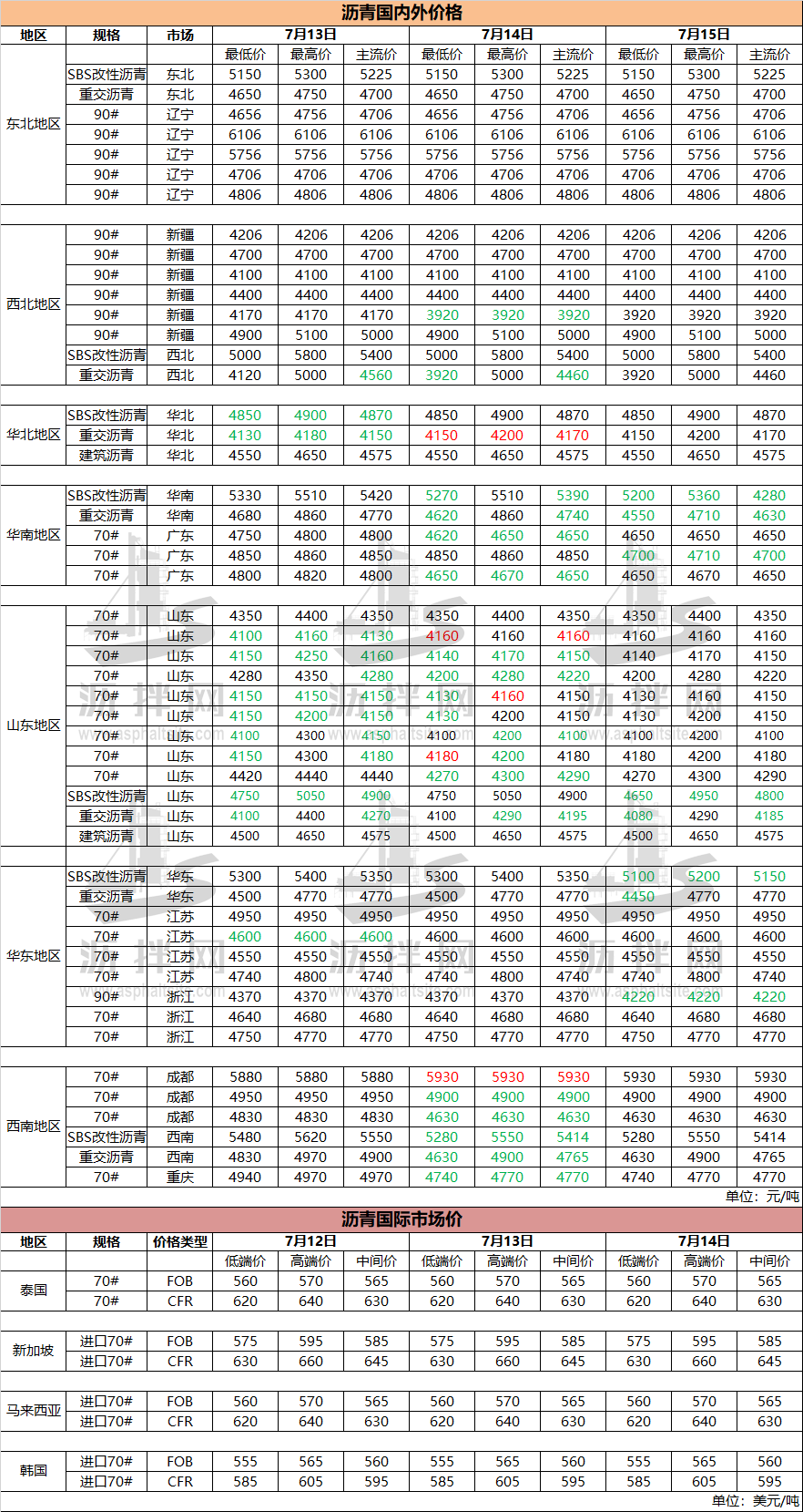 7月15日国内(外)沥青价格
