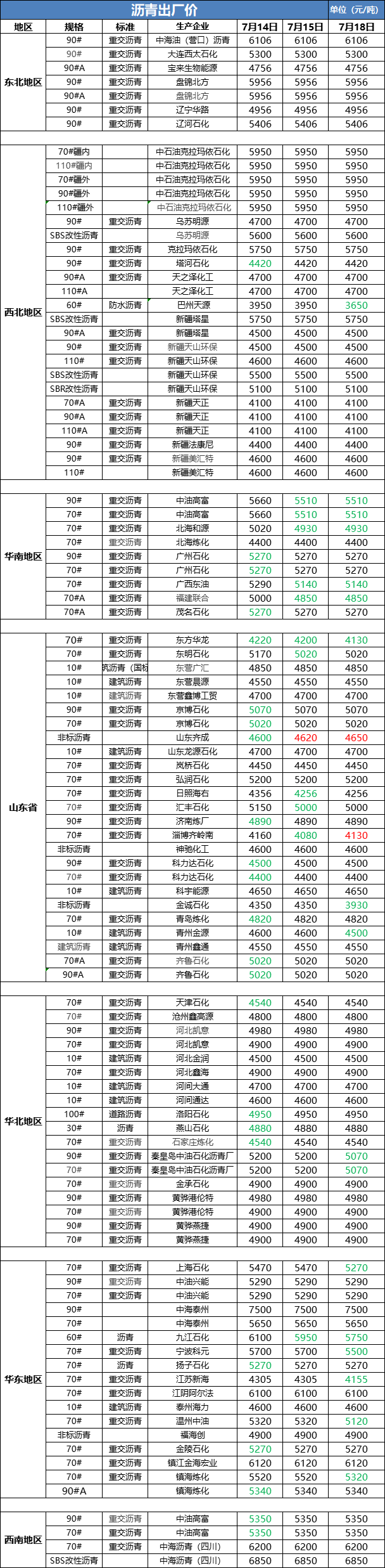 7月18日沥青出厂价