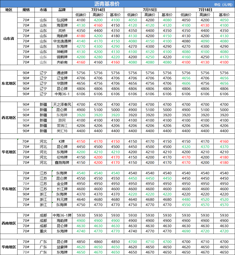 7月18日沥青基准价