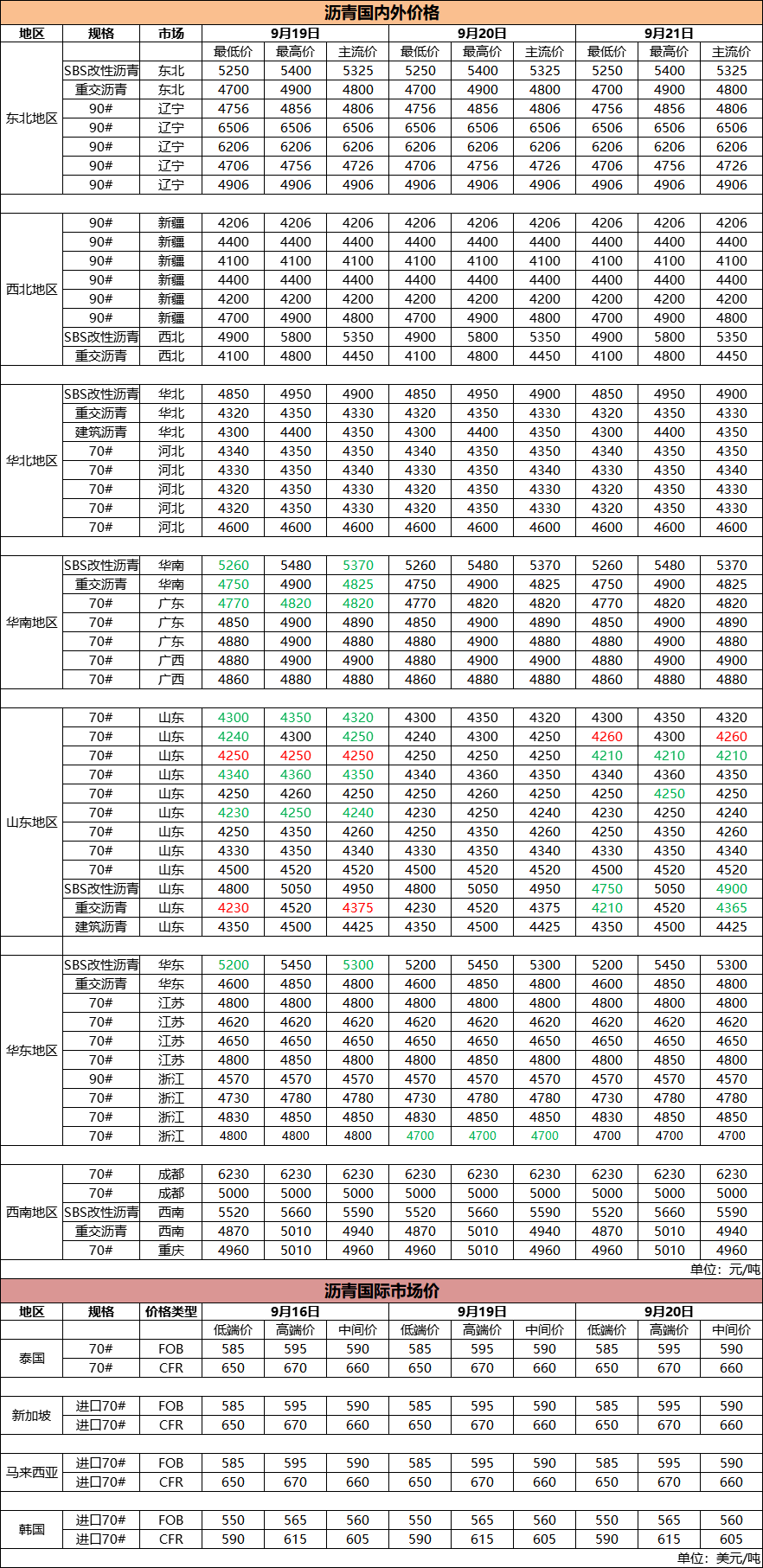 9月21日国内外沥青价格