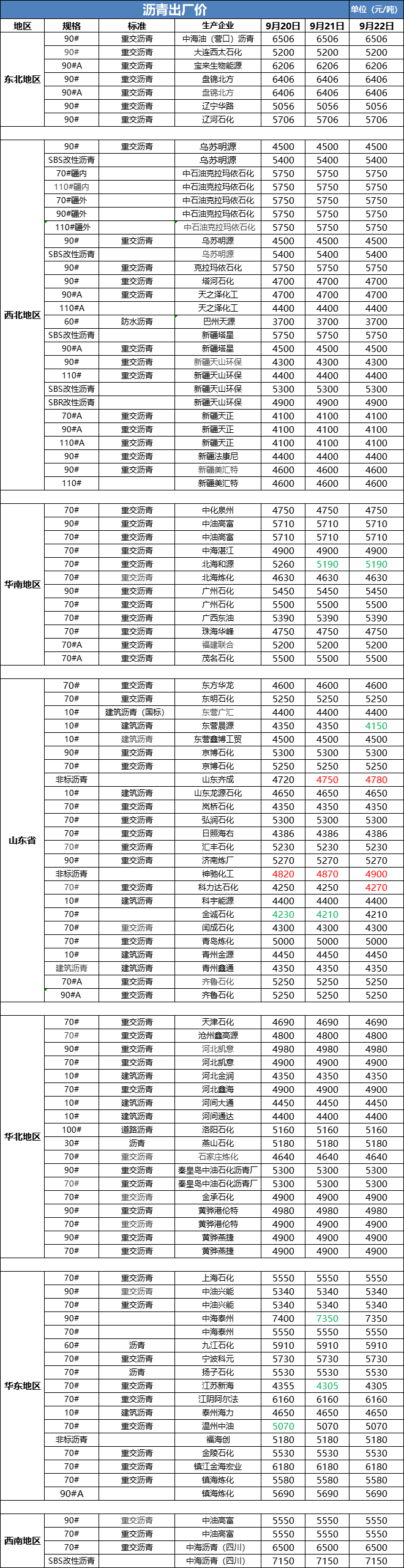 9月22日沥青出厂价
