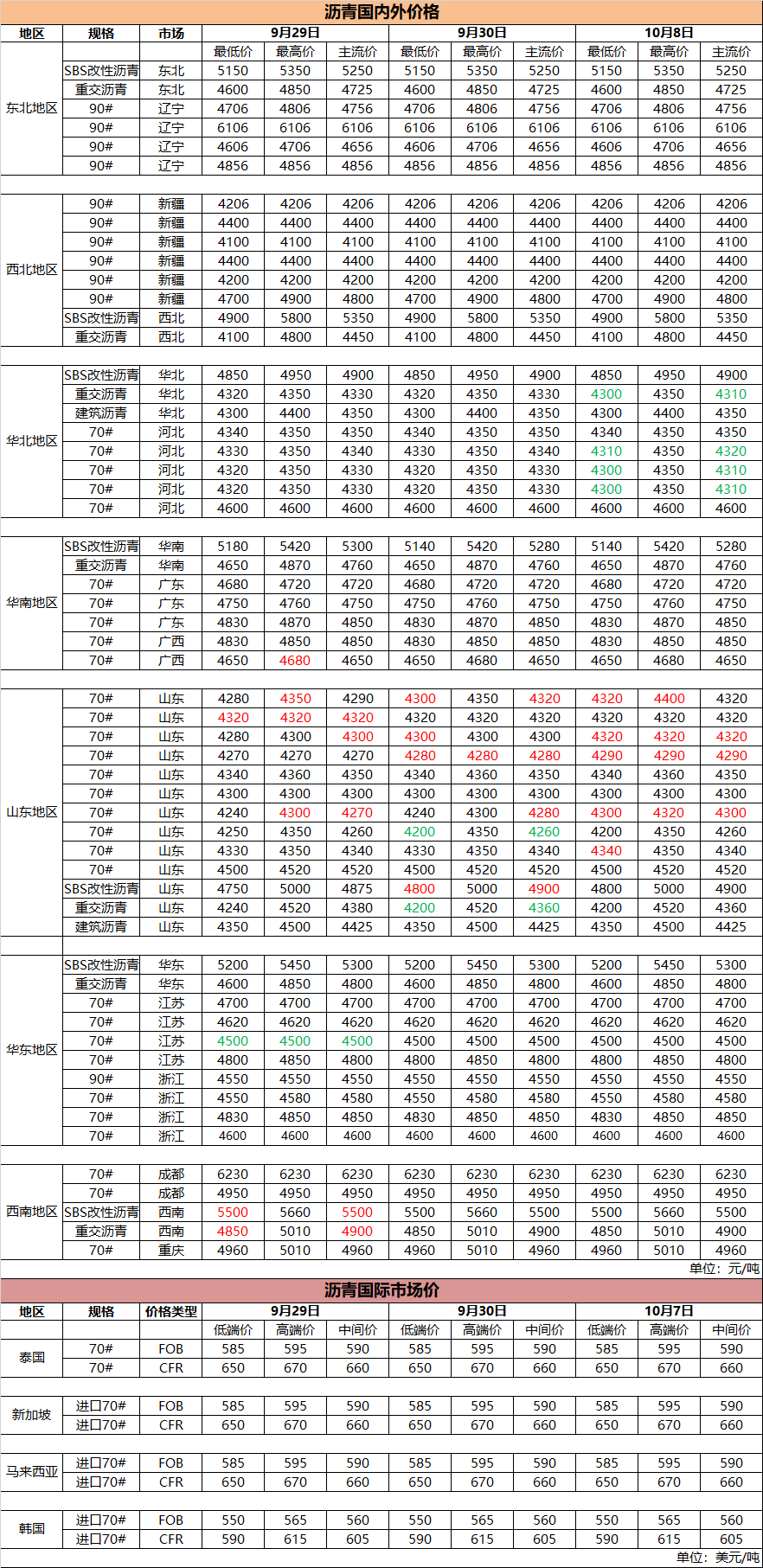 10月8日国内(外)沥青价格
