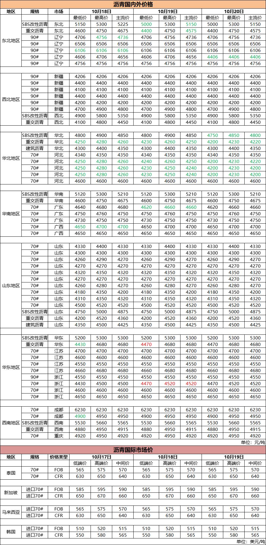 10月20日国内外沥青价格