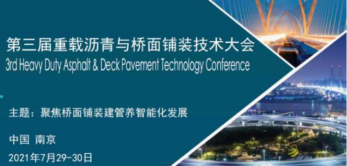 为了更好的推广桥面铺装技术的应用,以“聚焦桥面铺装建管养智能化发展”为主题的2021重载沥青与桥梁铺装技术大会,将于7月29-30日在江苏南京召开。大会将邀请众多专家共同探讨钢桥面铺装技术难题。议题主要涉及桥面铺装前沿技术及最新应用、铺装耐久性与智能化、智慧桥面建管养新技术、复合浇注式沥青混凝土铺装、ERS钢桥面铺装、环氧沥青铺装、超高性能混凝土UHPC铺装、桥面防水防腐材料、信息化管理系统开发、其它桥面铺装新技术、新材料、新工艺、新装备等。