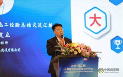 中国建筑土木建设有限公司总工程师张建立先生带来了题为“济青高速公路改扩建施工经验总结交流报告”的主题演讲,他主要分享了该项目总体情况、改扩建绿色建造技术实践、科技研发与四新技术应用、项目管理亮点和成果及社会效益。