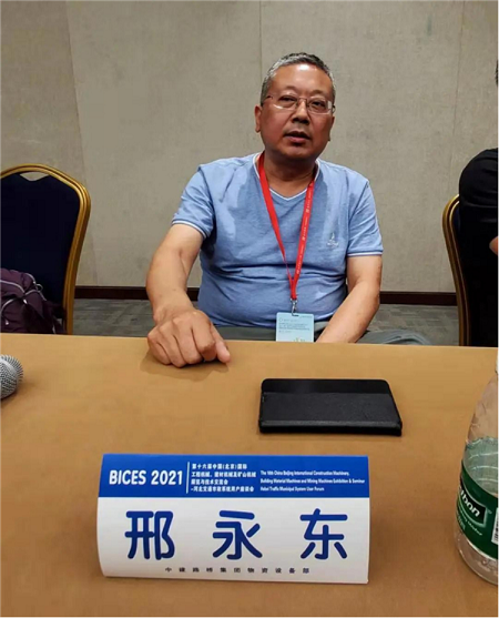 中建路桥集团物资设备部总经理邢永东对公司的设备情况进行介绍