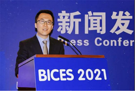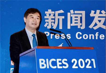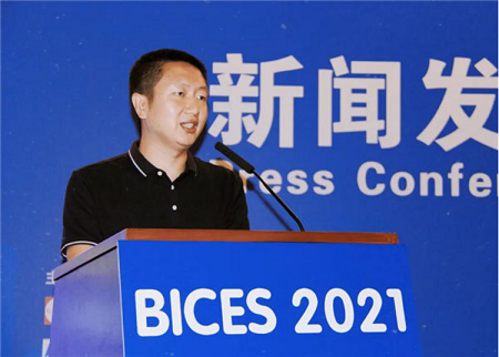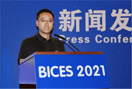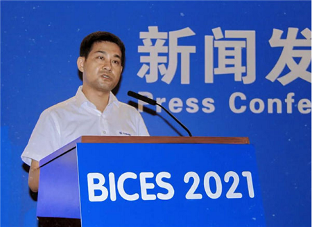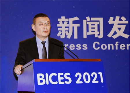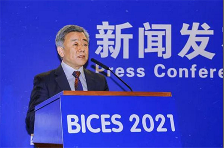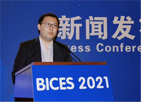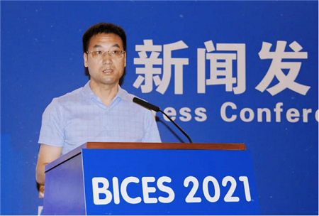 协会秘书长兼会展公司董事长吴培国作《BICES 2021展会组织工作情况》主题发言
