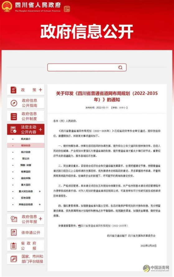 近日,《四川省普通省道网布局规划(2022-2035年)》(以下简称《规划》)经省政府审议通过,由交通运输厅、省发展改革委联合印发实施。