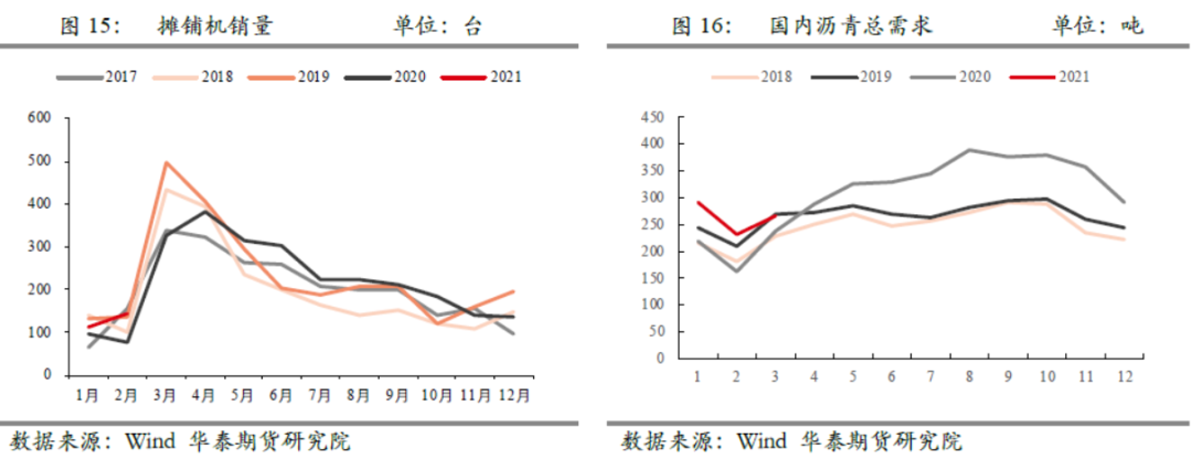 国内进口量来看,3月开始处于季节性回升期,因国内沥青进口量中超过一半来自韩国,二季度需重点关注韩国疫情对国内后期进口量或有的影响。但随着疫苗的上市,目前韩国疫情基本得到控制,出口或无明显影响,除非受到其他国家的疫情输入风险影响。二季度进口量有望呈现季节性回升。