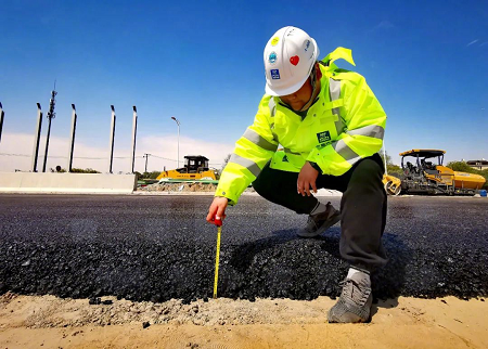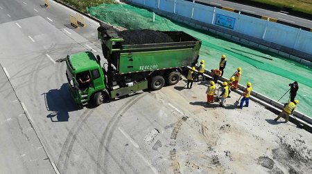 据悉,沥青摊铺分为三个阶段,初压、复压、终压,每个阶段进行五、六次的来回碾压,总共进行将近20次的反复碾压,使沥青的压实度达到设计要求,这会使后期行车安全性和舒适性得到很大的提高。