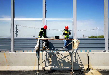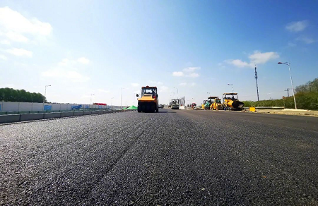 从4月12日起,东大公路跨线桥区域开始进行路面沥青摊铺作业,路基沥青共分为三层进行摊铺,总厚度达18厘米,分为4厘米的面层以及6厘米、8厘米厚的下基层,累计摊铺沥青近千吨,经过优化施工方案,合理配备大型沥青摊铺机及工作班组,确保了本次沥青摊铺按计划完成。接下来将对跨线桥区域的路沿石、路灯、绿化、标识标线等附属结构进行施工作业。