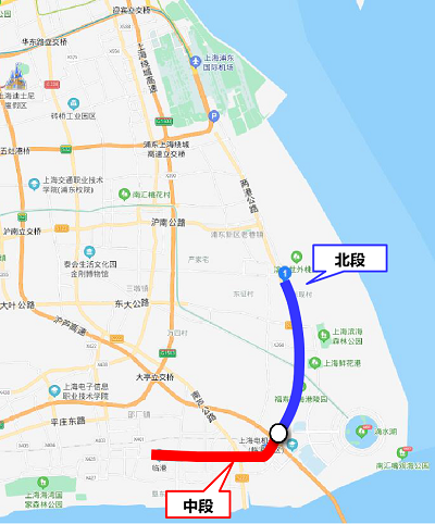 北段(S2-大治河)项目全长约12.8千米,主线采用地面快速形式,设置三座跨线桥,工程范围内设置6对匝道,建成后,新片区距离浦东国际机场仅需25分钟。
