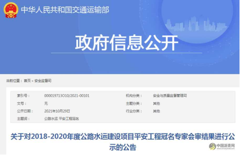 根据《交通运输部办公厅 应急管理部办公厅 中华全国总工会办公厅关于组织公路水运建设项目平安工程冠名工作的通知》(交办安监〔2021〕14号),为充分发扬民主、广泛听取意见、接受社会监督,经过省厅推荐、条件审查、专家评审,现就2018-2020年度公路水运建设项目平安工程冠名专家会审结果进行公示。