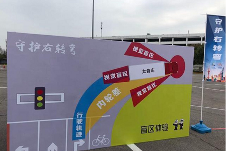 其中,右转弯“扫盲神器”是由两组凸面镜、右转弯停车观察区、隔离护栏组成的。其中,凸面镜进一步扩大了司机的视野,司机可通过凸面镜可以观察到后方非机动车动态;右转弯停车观察区用于规范货车司机的行驶轨迹;隔离护栏用于规范非机动车的行车轨迹。通过这几种设施能够有效将货车与非机动车的距离拉开,使得货车驾驶员的视野得到极大改善。