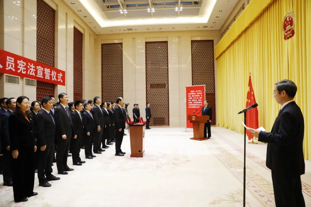 宣誓后,李小鹏发表讲话。他要求大家切实履行好神圣职责,以更高的标准严格要求自己,以更加出色的工作业绩报效国家和人民。一是提高站位,旗帜鲜明讲政治。深刻认识“两个确立”的重大意义,进一步增强“两个维护”的政治自觉、思想自觉和行动自觉,忠于党、忠于国家、忠于宪法,努力建设“让党中央放心、让人民群众满意”的模范机关。二是坚定立场,坚决维护宪法权威。要带头尊崇宪法,弘扬宪法精神,捍卫宪法尊严。三是勇于担当,切实履行法定职责。要提高依法治理能力,打牢法治建设基础,严格依法履职尽责。四是从严要求,自觉接受各方监督。要始终心怀敬畏,保持廉洁本色,严守纪律规矩。