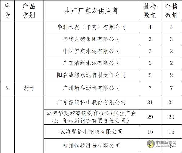 广东省交通运输厅关于2021年在建高速公路主要原材料质量抽检结果的通报