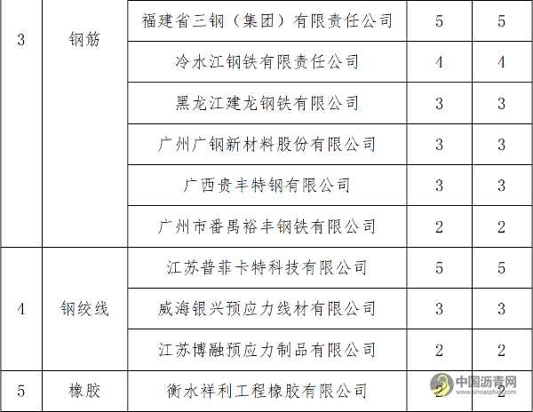 (二)根据2020~2021年我省在建高速公路主要原材料抽检不合格的具体情况(见附件),经统计以下厂家或供应商的产品质量问题较为突出(2021年抽检2批次以上且抽检合格率低于50%,或2020年及2021年两年抽检总合格率低于70%,且2020年、2021年抽检均有不合格情况),详见表3。
