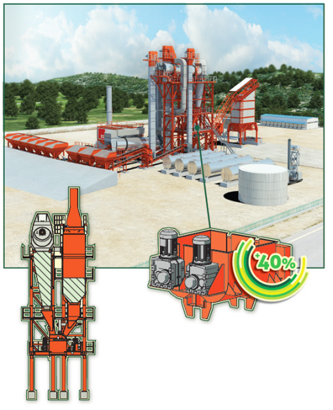 拌合楼整体重新设计 采取“整体式”设计,将再生作为一台搅拌设备的“标准配置”,是整套设备不可或缺的组成部分。