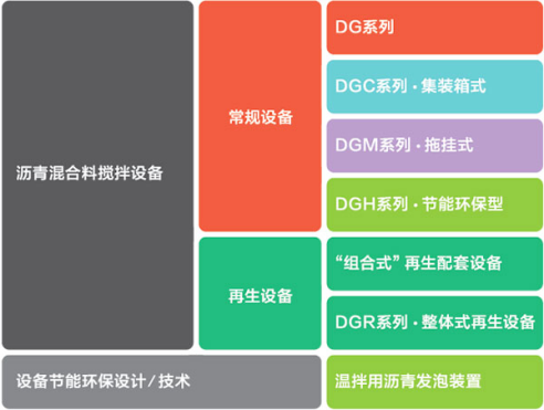 德基机械已经具有完善的产品线,为客户提供各种规格的沥青混合料搅拌设备,包括常规沥青混合料搅拌设备(成品仓旁置∕底置)、集装箱式沥青混合料搅拌设备、组合式再生沥青混合料搅拌设备以及最新研制的整体式再生沥青混合料搅拌设备。设备可使用柴油、重油、天然气、煤粉作为燃料,完善的产品线为客户多种选择方案,满足各种工程需求。