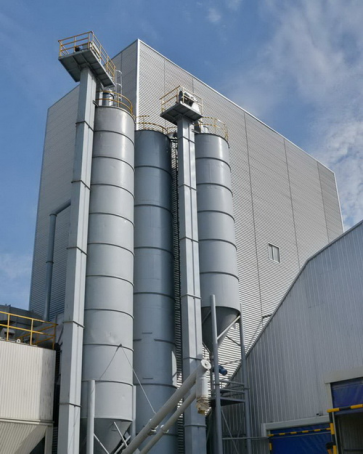 3、骨料采用立体式自动化输送,消除了装载机作业扬尘。同时减少装载机用量,约可节约生产费用1元/吨。