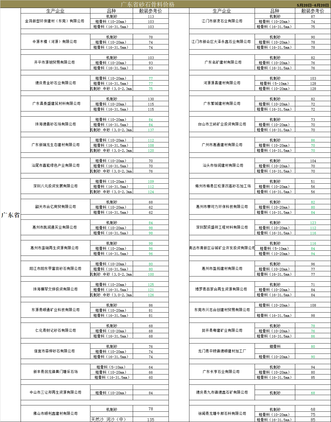 广东省砂石骨料价格