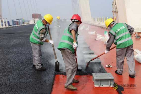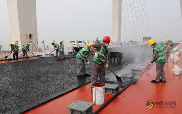 高淳环湖线花山大桥10月6日完成了沥青摊铺,标志着该工程进入最后冲刺阶段。