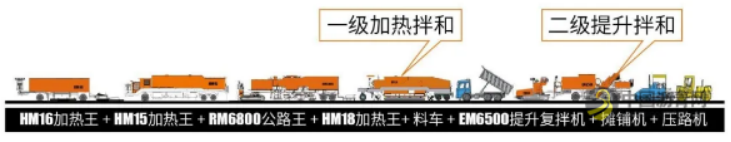 图4 橡胶沥青路面就地热再生工艺及设备组合