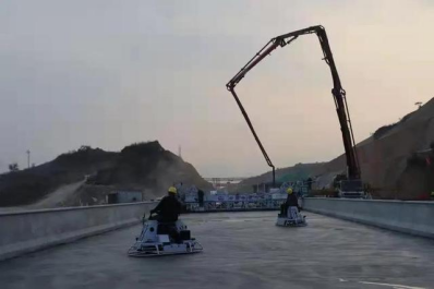 刘列宁说,进入四季度,受寒潮影响,有效施工时间大大缩短,整个项目进入最后冲刺阶段,为了实现年度任务目标,项目部不断加大人力、物力投入,引进了三维激光摊铺机和液压磨光机,提升了桥面铺装作业面效率。截至目前,项目部每天有400多人奋战在寒冷的施工一线。