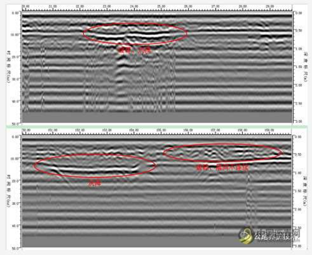 采用FWD进行弯沉检测,准确判定旧路结构承载能力情况,结合使用LTD-R1探地雷达分析结构层内部病害。