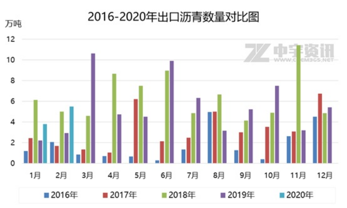据海关数据显示,2020年1-2月份出口沥青总量约在9.25万吨,同比去年时期总量5.13万吨,增加4.12万吨,增幅高达80.31%。中宇资讯分析认为,由于今年疫情爆发,导致下游终端工程基建等延迟开工,令炼厂外销压力大幅提升,且多数地区物流运输受到限制,因此部分炼厂加大对外出口力度,主要以华东、华南等地区炼厂为主,创近八年同期第二高位,仅次于2018年1-2月出口总量11.12万吨。