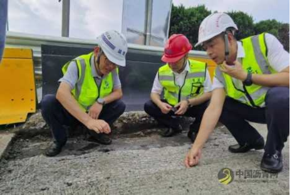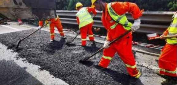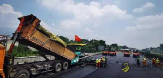 在高温天气与高温沥青的双重“烤”验下,埋头苦干的工人们流下一滴滴黄豆粒般大小的汗水,滴到沥青上发出“嘶嘶”的响声,衣服都能拧出水来。49岁的张高良是沥青路面班组的一名有着20年工龄的老施工员,皮肤黝黑的他在现场不断地指挥工人们施工,还要不时地检查路面平整度、摊铺机各个部件是否正常等。“沥青摊铺就要趁热,温度低了影响道路质量。”他希望接下来的天气也都能这般“给力”,“天工作美的情况下,我们抓紧时间、高效配合,一天就能完成4000吨的沥青铺设。”