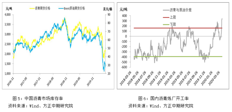 近期,内外盘原油仍在走跌,尤其是近月合约面临较大压力。产油国宣布减产后,5月份才开始执行,执行情况也未可知,且减产量不足以弥补二季度市场的过剩量,而在减产落地后,由于疫情仍处在发展期导致看不到需求恢复的预期,因此近期多头实际没有更多的期待,内外盘原油尽吐此前的涨幅。短期来看,无论是市场主动减产还是被动减产均无法弥补需求的下降,近端市场基本面仍然疲软,并将继续施压油价。而国内原油近月合约同样面临内外价差修复以及仓储费上涨的压力,或将二次探底。而原油的走跌将继续压制沥青走势,沥青趋势上将于原油保持同步。而由于近期沥青价格现货表现坚挺对沥青盘面也有一定支撑,沥青期价表现相对抗跌,使得沥青盘面利润运行至历史高位,截止周一收盘,沥青盘面利润达到349元/吨,创历史最高水平。而从历史上看,沥青单边趋势基本与原油同步,沥青盘面大概率会出现补跌,进而令盘面沥青收缩,因此也带来了做空沥青盘面利润的机会。