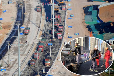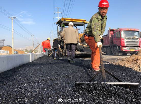 11月20日,城区长安北路改造工程项目施工现场(皋城路至皖西大道段),工人正在摊铺沥青。据该项目现场负责人介绍,备受广大市民关注的六安市畅通城市环线工程重要节点的长安北路改造工程,施工进度稳步推进,目前正在进行水稳层制作、路牙石安装等施工,其中皋城路至皖西大道段已经开始铺设第一层沥青,下步将进行电线杆迁移、强弱电入地等施工,力争早日建成方便市民出行。